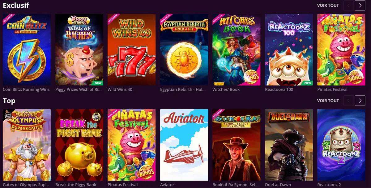 - Catalogue complet de plus de 2000 jeux (machines à sous, jeux de table, casino en direct)
